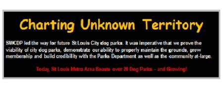But there were no Ordinances in place to address City dog parks and very few places where dogs could congregate off-leash; and no dog parks at any of the St Louis City parks. So the hard work of making contacts, cultivating relationships with people who shared their dream, and building the infrastructure and framework for dog park viability in the City of St Louis began.
