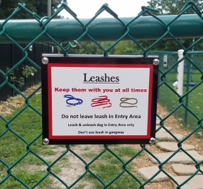 Some members seem to need reminders about keeping the leash (s) with them while on the grounds. So instead of constant email reminders – now – there is a sign next to the Main Gate – as an ongoing reminder. Keep the leash with you at all times. When you need it – you will need it within seconds – no time to walk to Entry Area to retrieve it. Entry Area is place to unleash your dog prior to entering dog park – and – place to leash your dog prior to leaving dog park. A Disservice To Your 4-Legged Dogs cannot be dogs and respond as they would normally would around other dogs when they are on a leash. The leash is a restraint – it will create fear and exasperate the situation. Move through the Gangway (or other areas) with your dog off-leash Exception: After a dog fight or injury, when you have no alternative but to leash your dog and guide out of the dog park. Keep moving quickly. |