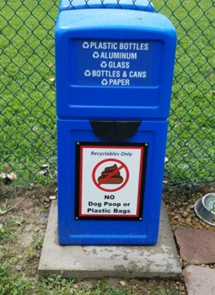 Yes – SWCDP believes in recycling. That is why we provide special trash cans just for the recyclables. We have had issues with members throwing dog poop and plastic bags in these blue cans…a BIG No-No. Thank you, John (Mac), for managing our recycle efforts and taking the contents off-site to appropriate recycling center for us. General Cans – Gray or Tan We don’t believe you will find a dog park with more trash cans and bag holders than SWCDP! We make it easy for our members to keep our playground clean and poop free. Thank you, Bill (Cowboy), for hauling those big bags of stuff to the curb for us twice per week. Please use appropriate trash cans for your waste, and please, do recycle It’s up to you, members, to refill those white bag holders! |