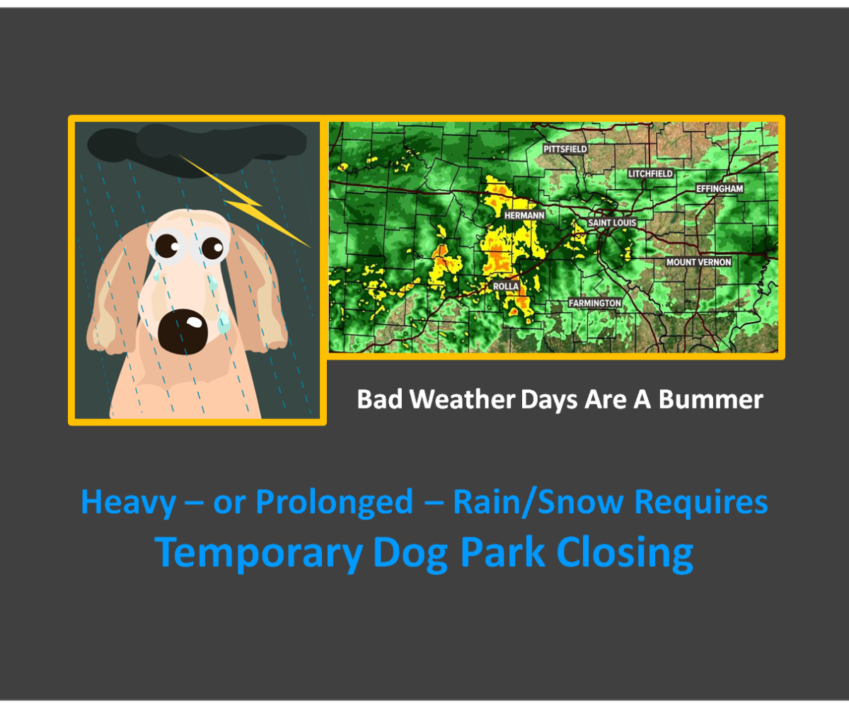 We will remain open during or after a light or quick rain or snow … but we will close the dog park during and following a heavy or prolonged period. What members should take into consideration is the fact that following each period of inclement weather – we must stay closed for an effective “dry out” period as well. Our policy would be useless if we re-opened immediately.