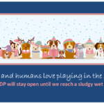 Many years ago, SWCDP launched our inclement weather dog park closing policy – however we did not use it with any frequency or consistency. Admittedly, we were a bit timid with our closing decisions. With best intentions – and desire to give our members as much time on the playground as possible – we very seldom closed after periods of wet weather – and we let the grounds “go to the dogs”!