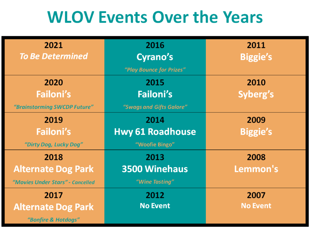 We wrap up each membership season with a celebration of our volunteers. SWCDP sponsors a WLOV event at various venues in the area.